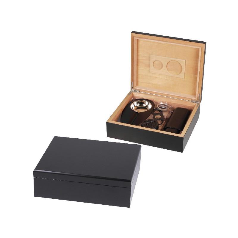CAJA PUROS NEGRA+CENICERO+PURERA+CORTAPUROS