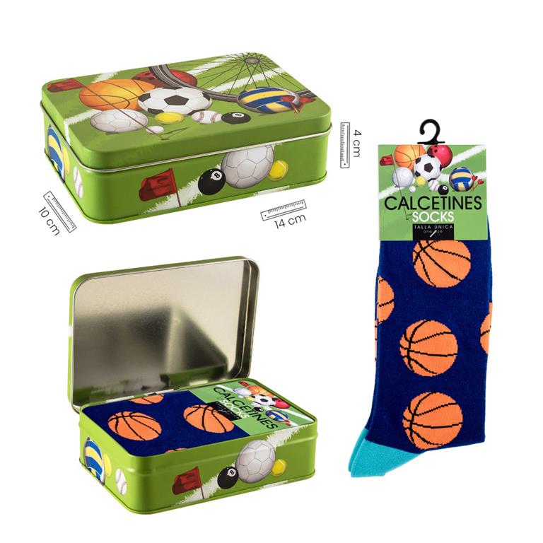 CALCETINES BALONCESTO+CAJA LATA DECORADA