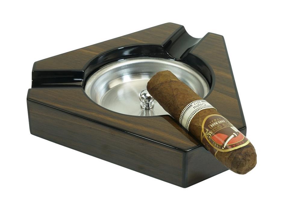 CENICERO MADERA PARA 3 PUROS TRIANGULAR.