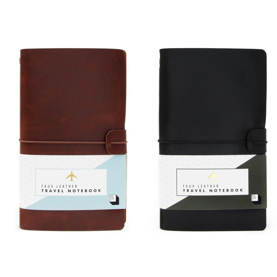 Cuadernos recubiertos de piel sintética de color negro y marrón.