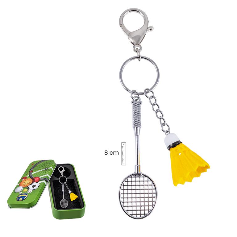 LLAVERO BADMINTON+LATA DECORADA