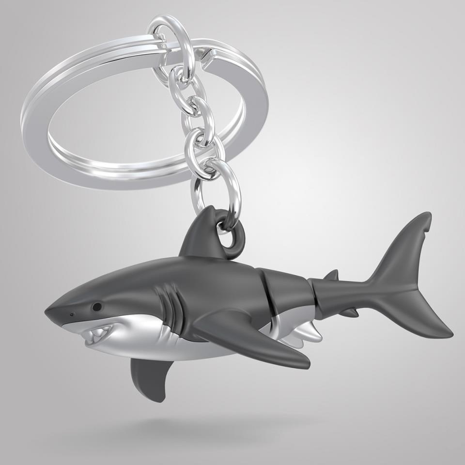 Llavero de aleación de zinc con un diseño dinámico de tiburón que simula movimiento. Presenta un acabado mate y detalles en cromo brillante, que le dan una apariencia moderna y elegante. Este llavero único es perfecto para los amantes de los animales y el diseño innovador. Presentado en una caja de colección, con diseño exclusivo y alta calidad.