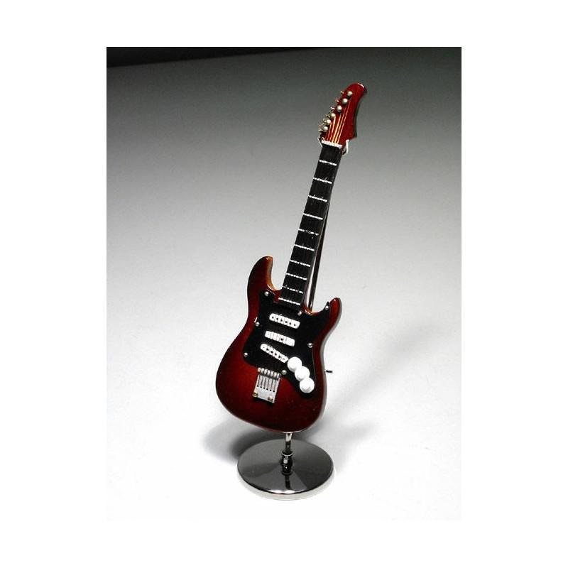 Guitarra eléctrica decorativa marron. Miniatura en madera. Con estuche y soporte