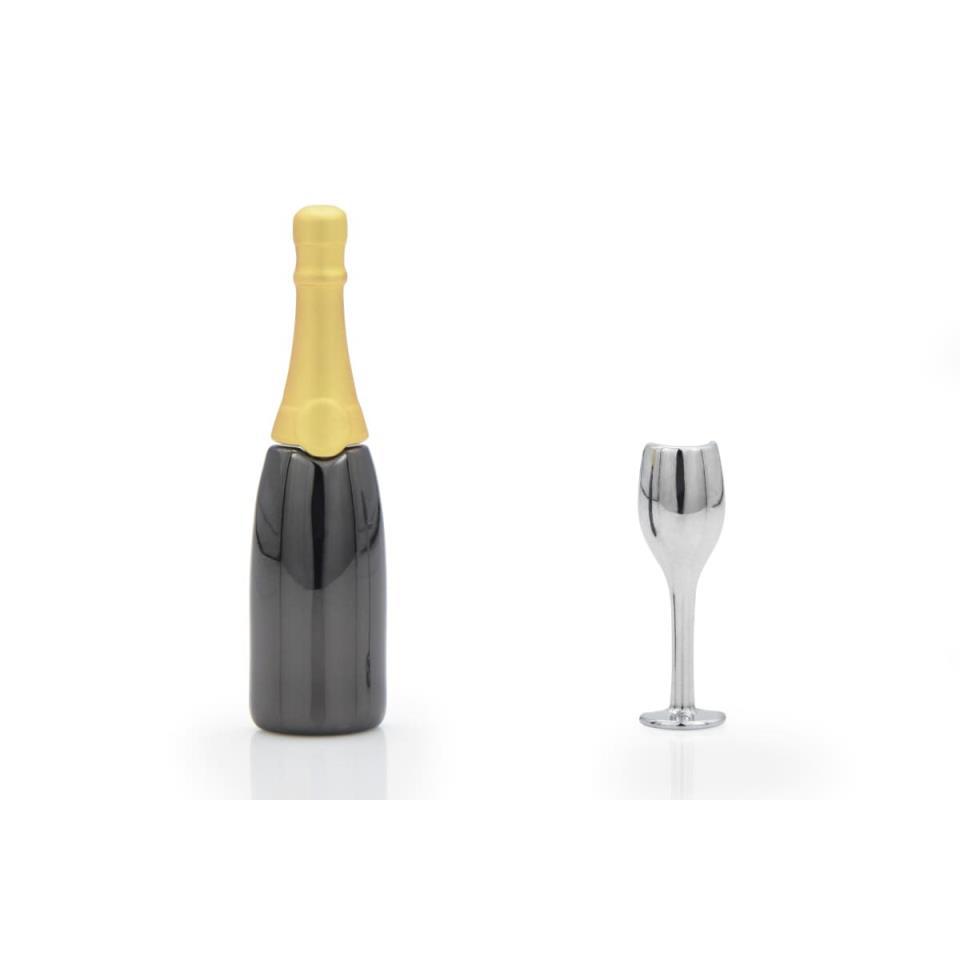Set de pins con diseño de botella de champagne y copa, perfecto para tiendas que buscan productos con un toque festivo y sofisticado. Un detalle elegante y llamativo, ideal para ventas por impulso o regalos con estilo.