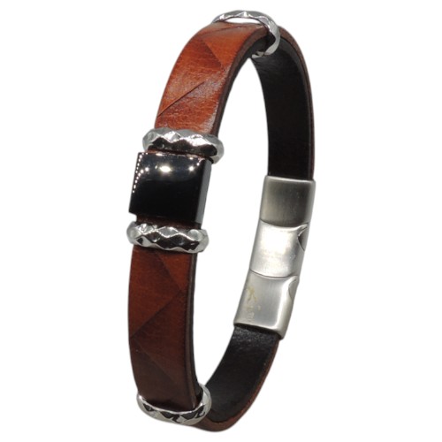 PULSERA I CUERO CENTRO ACERO NEGRO