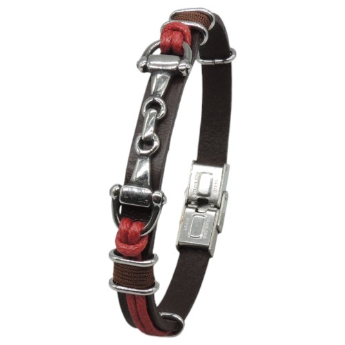 PULSERA I PIEL ROJA Y MARRON ESTRIBO CENTRAL