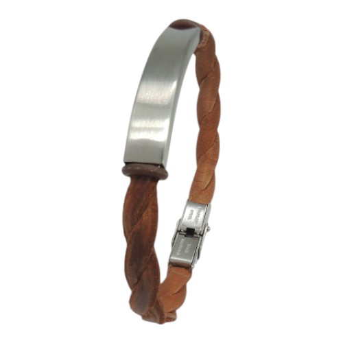 PULSERA I TRENZADA CUERO PLACA CENTRAL