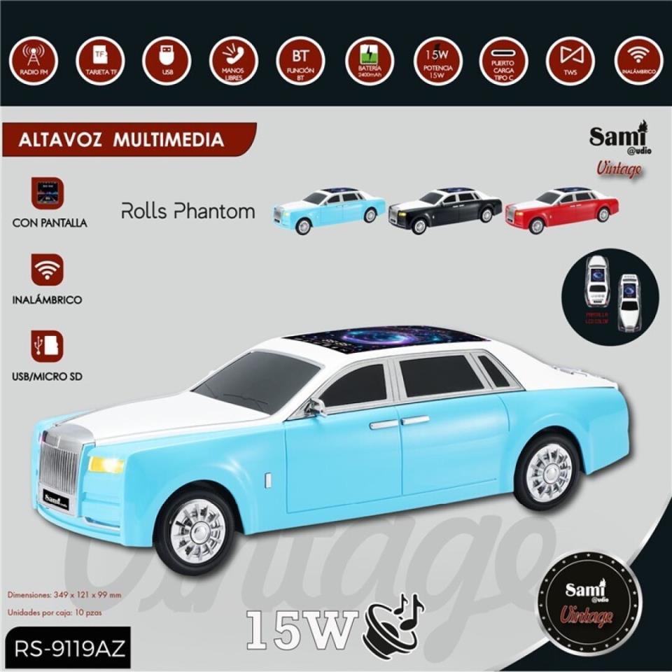 RADIO+ALTAVOZ COCHE RETRO ROLLS PHANTOM AZUL 15W