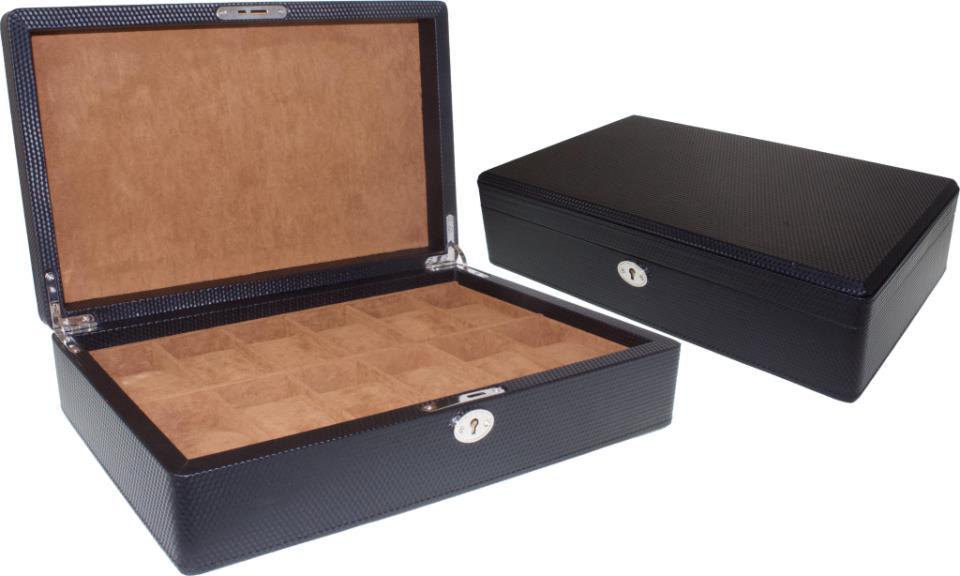 Estuche para guardar relojes, o pulseras rígidas en simil piel negra, en su interior 12 almohadillas para poner individualmente los relojes. Ideal para que no entre el polvo y evitar rasguños o golpes. Un regalo para satisfacer a cualquiera que lo reciba.