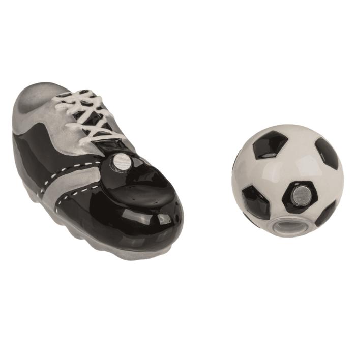 Salero y pimentero, fútbol y zapato